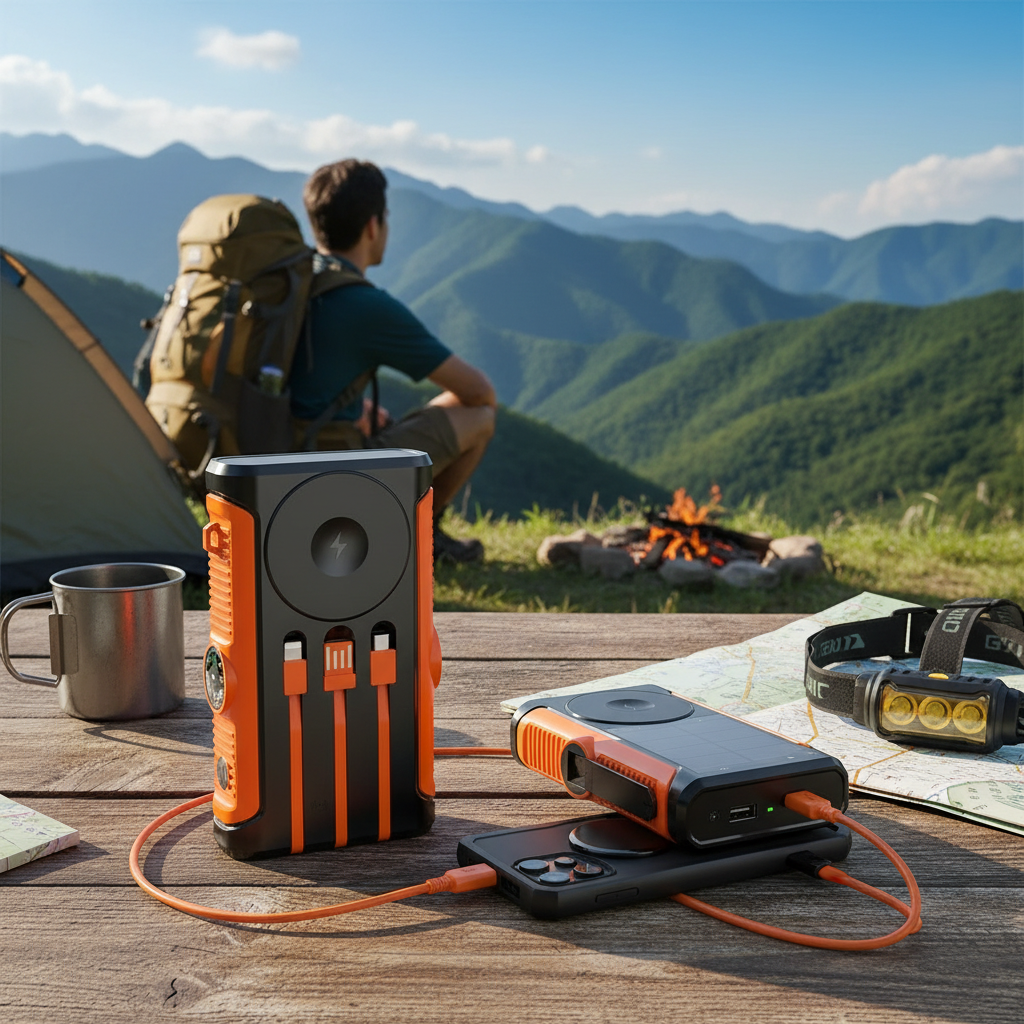 50000Mah Solar Power Bank 22.5W Magnetic Wireless Charging Camping Powerbank with Cables External Battery for Iphone Magsafe